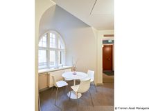Tämä 1. kerroksen tyylikäs toimistotila sijaitsee talon jugend-osassa Yrjönkadun puolella.