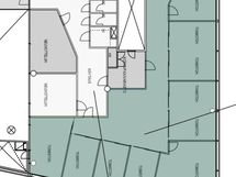 Kolmannen kerroksen toimistotila jossa on erikokoisia toimistohuoneita.
