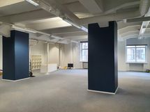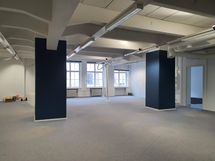 Tämä 5. krs industrial-henkinen tila soveltuu moneen käyttötarkoitukseen. Tilassa isot ikkunat, huonekorkeutta ja tavarahissi (1 500 kg) joka tulee suoraan tilaan. Tästä persoonallisesta kokonaisuudesta löytyy iso avotila, 4 erikokoista huonetta, keittiö, kaksi wc-tilaa ja suihku.