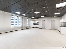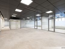 Muuttovalmis koko talon siiven laajuinen monitilatoimisto. Runsaasti avotilaa ja useita huoneita. Näkymät kahteen suuntaan pitkiltä ikkunaseinustoilta.