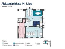 Tyylikäs kolmannen kerroksen 150 m² toimistotila Aleksanterinkadulla.