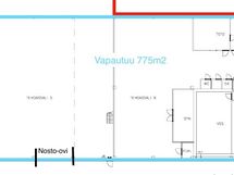 Mahdollisuus jakaa kahdeksi tilaksi 325m2 ja 435m2 - kaksi nosto ovea tilaan 3.9x3.9m ja 2.3x2.5m - wc - 5 toimistohuonetta - iso piha-alue - ei lattiakaivoa