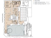Kiinteistön pääsisäänkäynti on näyttävästi talon kulmassa. Toisessa kerroksessa on vastaanottoaula, neuvottelukeskus ja Adams- sali, joka voi palvella kahvilana, lounasravintolana tai business- loungena suuremmissa tilaisuuksissa.