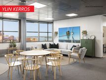 Uniikki toimistotila Ruoholahdessa. Vallan ylin, 14. toimistokerros. Tilan koko 380m2. Huikeat näkymät Ruoholahden kattojen yli jokaiseen suuntaan.