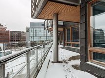 Tähän tilaan saa hyvin sovitettua niin avotyötilaa, neuvotteluhuoneen kuin hyvänkokoisen lounge-alueen tulevan vuokralaisen toiveiden mukaisesti. Toimistotilan yhteydessä myös 50 m² terassi, josta avautuu näkymät Tennispalatsinaukiolle.