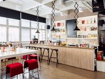 Moderni mutta rouhea 713 m² toimisto Sörnäisissä Hattutehtaan 2. kerroksessa.