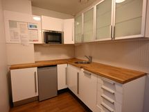 - Keittiön varusteet: Jääkaappi, mikroaaltouuni ja astianpesukone