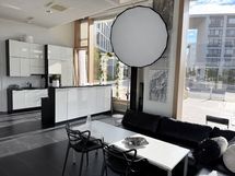 Tämä ilmava, lähes viisi metriä korkea, 52,5 m² liiketila sijaitsee kiinteistön katutasossa. Isoista ikkunoista näkee suoraan Töölönlahdelle. Liiketila on varustettu integroiduilla keittiökodinkoneilla, näyttävillä kivitasoilla, ja siihen kuuluu omat suihku- sekä wc-tilat. Tila sopii loistavasti esimerkiksi kuvaukseen tai kauneudenhoitoalan toimijalle. Myös kuvauslaitteista on mahdollista keskustella. Liiketilan edusta kuuluu myös tilaan, joten sen eteen pystyy hyvin laittamaan pienen terassipöydän.