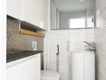 - Erillisen WC:n varusteet: WC-istuin, pesuallas, peili ja bidee-suihku.