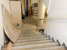 Tilassa on oma sisäänkäynti sisäpihalta – itse tilaan kuljetaan muutaman rappusen kautta.