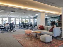 Siistiä toimistotilaa isoilla avotiloilla ja lasiseinillä.