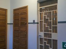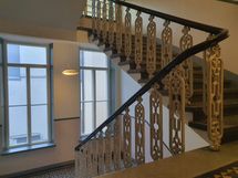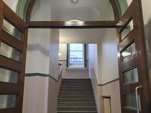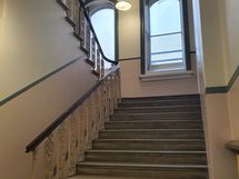 Kaunis rappu ja korkeat huoneet isoine ikkunoineen.