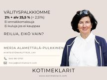 Tiedustelut ja esittelyt Merja Alamettälä-Pulkkinen 040 961 0701 merja@kotimeklarit.com