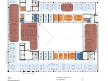 831 m² toimistotila ensimmäisessä kerroksessa tarjoaa inspiroivan työympäristön 35–60 hengen tiimille. Tilasta avautuu huikea urbaani näkymä Suvilahteen, joka tuo arkeen energiaa ja kaupunkitunnelmaa. Ennen muuttoa tila remontoidaan, joten vuokralaisella on erinomainen mahdollisuus vaikuttaa pohjaratkaisuun ja materiaalivalintoihin, juuri sellaiseksi kuin oma työyhteisö tarvitsee. Oheinen pohjakuva on tilankäyttöesimerkki toisesta tilasta.