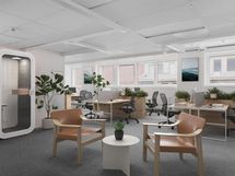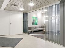 Moderni avotilasta ja muutamasta huoneesta koostuva toimisto.