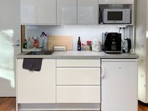 Keittiön varusteet: Jääkaappi. Minikeittiö.