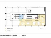Ruoholahdenkatu 14 tarjoaa modernit ja muunneltavat toimistotilat Helsingin Kampissa, aivan Lastenlehdon puiston ja Kampin keskustorin tuntumassa. Toisen kerroksen 140 m²:n toimistossa on avotoimistoa, viihtyisä lounge, neuvotteluhuone, wc-tilat ja oma keittiö. Koko seinän levyisistä ikkunoista tulvii luonnonvaloa, ja alkuperäiset tiikkiset ikkunapenkit ja karmit tuovat tilaan lämpöä ja persoonallisuutta.