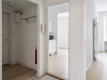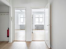 Sisäänkäynti yhtiön A-rapusta. Ikkunat ovat sisäpihalle ja kadulle.