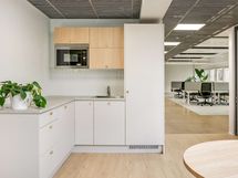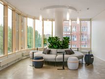 Viidennen kerroksen avotoimisto kerroksen päädyssä. Tämä tila muokataan vuokralaisen tarpeiden mukaan.