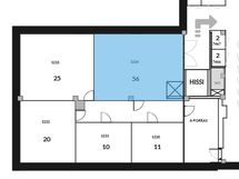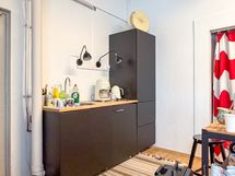 Remontoitu siisti toisen kerroksen toimistotila omalla pienellä keittiöllä.