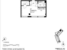 Vuokrattavissa 35 m2 pientoimistotila Taka-Töölössä. Tilaan sisältyy avokeittiö sekä wc- ja suihkutilat.