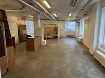 Tilasta löytyy WC ja vesipiste, sekä pieni varastotila, sekä erikseen sovittavissa säilytystilaa kellarissa. Tilaan jätettävistä kalusteista (kuvassa näkyvät) voidaan sopia erikseen.