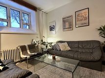 Vuokrattavana viihtyisä ja rauhallinen kalustettu terapiatila / vastaanottotila Väinämöisenkadulla Etu-Töölössä, Väinämöisen puiston läheisyydessä.