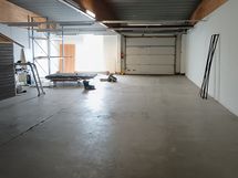 Gyprok seinät, valot kattotuoleihin kiinnitettynä olevat loisteputket