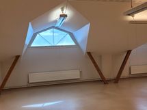 3. kerroksen valoisaa, korkeaa ja siistiä tilaa. Tilassa kuusi isompaa huonetta ja iso avotila.