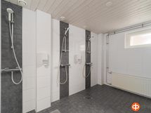 sali, erillisiä huoneita, saunatilat, pukuh, wc.t