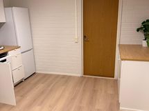 Tilaa isolle ruokapöydälle, Astianpesukone, Keraaminen liesi, Jääkaappi, Pakastin, Laminaattitasot, Liesikupu