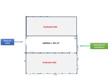 Hallitila #2 on n. 451 m². Korkea nosto-ovi L 4,42 m x K 4,50 m ja käyntiovi.