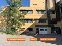 Nosto-ovi on 3,0 x 2,6 metriä ja erikseen on käyntiovi sisääntultaessa.