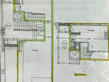 Katutason kahden huonetilan yhteispinta-ala on n. 56 m2 ja alakerran huonetilan pinta-ala on n. 24,5 m2.
