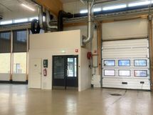 Tilassa on sisäänajon mahdollistava nosto-ovi (korkeus 3,3 m, leveys 3 m), jonka yhteydessä on öljyn- ja hiekanerotuskaivo. Lisäksi tilaan on katettu pääsisäänkäynti, joka lisää käyttömukavuutta. Pihalla on runsaasti pysäköintitilaa.