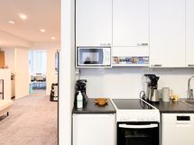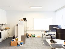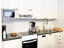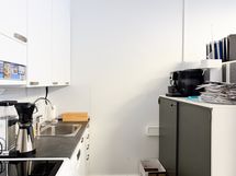 - Keittiön varusteet: Jääkaappi, liesituuletin, liesi, uuni ja astianpesukone. Toimistotilassa on siisti avokeittiö, jossa hyvät mahdollisuudet myös ruoanlaittoon.