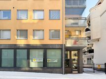 Liiketilan ikkunat ovat Rauhankadun suuntaan