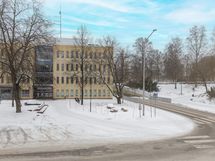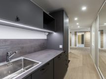 Neljä toimistohuonetta, aulatila, pienkeittiö ja wc.
