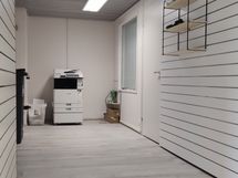 Saman liikehuoneiston toisen vuokralaisen kanssa jaettu yhteistila, jossa vessa ja minikeittiö. Väliseinä erottaa tilat toisistaan. Ilmalämpöpumppu viilennykseen yhteistilassa.