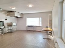 Kunto, varusteet ja palvelut: Hyväkuntoinen tila, toiseen kerrokseen pääsee hissillä, tilassa wc, keittiövalmius, hyvä valaistus, vesipisteitä ja voimavirtaa