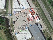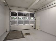 Maskun liikekeskuksessa lämmin hallitila nosto-ovella ja tavallisella käyntiovella.