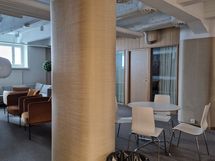 Lattiapinnat ovat tekstiilipalalaattaa, toimistohuoneet ovat lasiseinillä. Sisääntulon yhteydessä aulatila, neukkaritila sekä 2 kpl wc-tiloja.