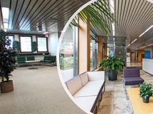 Rakennukseen sisääntulo on viihtyisä, jossa toimii talon yhteinen aulapalvelu ja lounasravintola Antel.