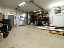 Tilassa nosto-ovi, korkeus 3 metriä. Tilaan erillinen käyntiovi nosto-oven vieressä.