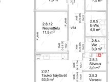 Tilassa on kahdeksan toimistohuonetta, joista yksi toimii hyvin neuvotteluhuoneena. Tilassa sisääntuloaulan jälkeen on avotila, jota voi hyödyntää kahvi-/taukotilana, kun täältä löytyy toimistokeittiön kaulustus sekä paikat astianpesukoneelle, mikrolle ja jääkaapille. Lisäksi tiloista löytyy kaksi erillistä wc:tä. Pohjakuvassa mainitut siivouskomero sekä varasto on yhdistetty yhdeksi toimistohuoneeksi. Yhtä vaille kaikissa toimistoissa on ikkuna oven vieressä, mikä antaa kivasti valoa tilaan ja näköyhteyden työkavereihin.