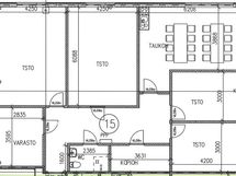 4 toimistohuonetta, iso neukkari, kopiokonehuone, varasto ja wc