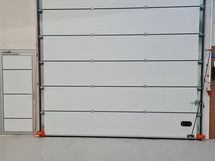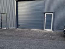 Iso uusi sähkötoiminen nosto-ovi + vieressä alumiininen käyntiovi