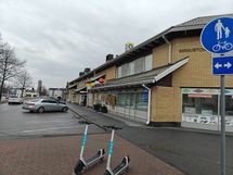 Sirkustorilla näkyvällä sijainnilla rakennuksen kulmassa tilava liiketila vilkkaasti liikennöidyn tien varrella.