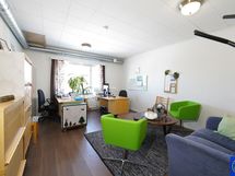 Toimitilaa erinomaisella sijainilla! Nyt tarjolla monipuolinen toimitila huippusijainnilla, joka sopii monenlaiseen yrittämiseen / toimintaan. Noin 500m² tilava kokonaisuus sisältää toimistotiloja sekä hallitilan. Tiloissa erillisiä toimistoja, useampi wc / kph, useampi keittiötila yms. Sisäänkäyntejä on myös useampi. Vesikiertoinen kaukolämmitys sisältyy vuokraan. Pihassa reilusti pysäköintitilaa.