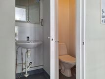 Huoneistoselitelmä: Avointa tilaa ja useita wc-tiloja